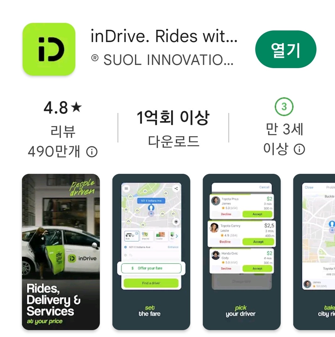 <인 드라이브 앱>을 <로카>보다 더 선호하는 이유는 승객이 요금을 제시하는 승객 우선 시스템이라는 점 때문입니다. 두 앱을 모두 사용해 보시고 본인에게 맞고 편리한 택시 앱을 사용해 보실 것을 추천합니다.