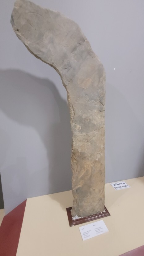 1번방은 고대 유물과 공룡뼈 조각들이 있는 방입니다. 고대 비석들과 왓푸 사원으로 대표되는 크메르 유적이 전시되어 있습니다.